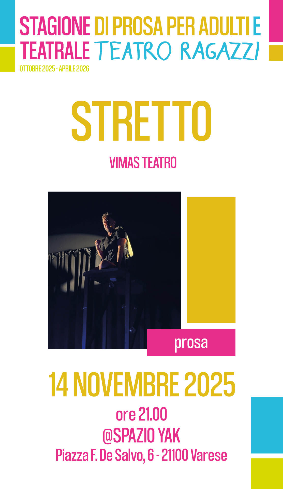 Interpretato da Stefano Panzeri, STRETTO racconta una storia di emigrazione e nostalgia, fluttuando tra ricordi e visioni. Come in un dolce dormiveglia S. si rivela, accompagnato dalla musica originale live e dal canto ammaliante di Giorgia Faraone, immagine della luna riflessa nelle acque.
