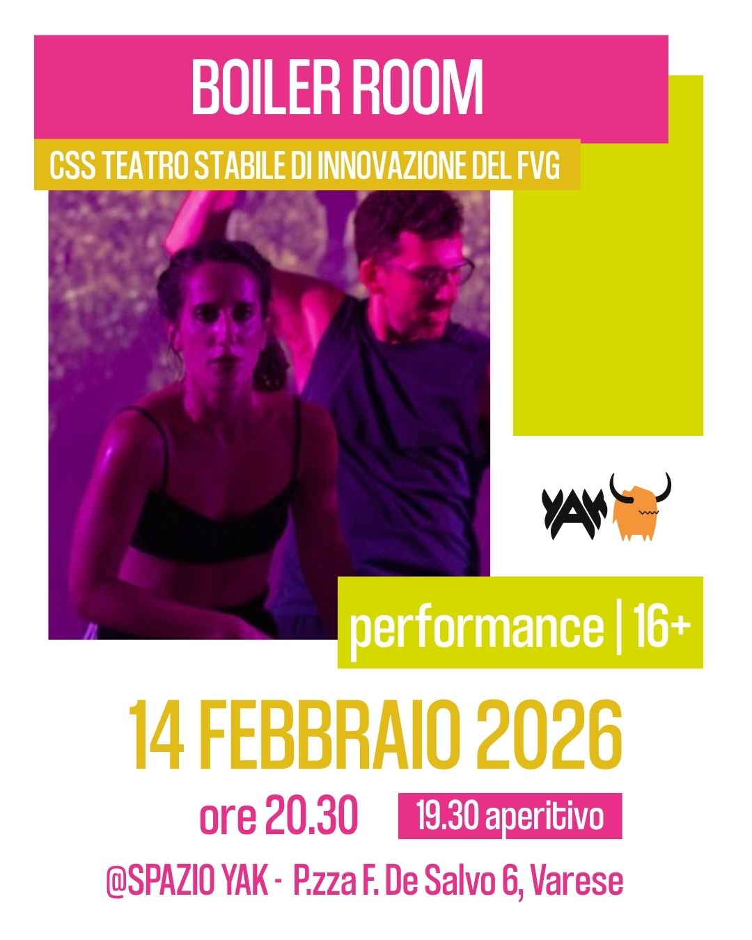 SABATO 14 FEBBRAIO | ore 20.30 | Spazio YAK